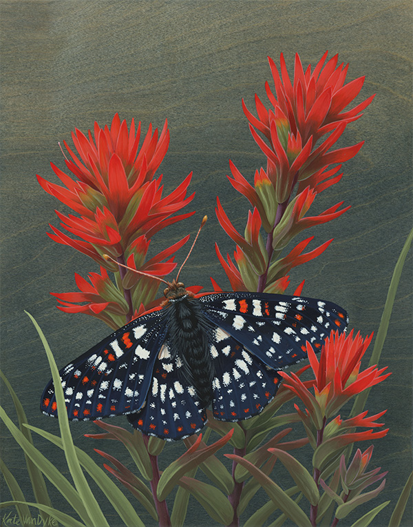 Indian Paintbrush and Variable Checkerspot – 14″ x 11″